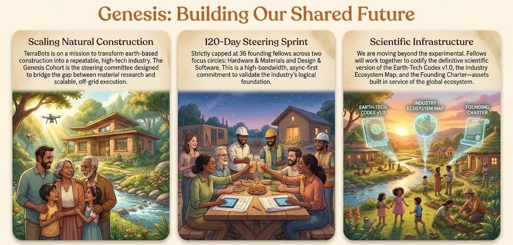 We develop the operating system that bridges ancient material wisdom with precision robotics —creating the technical and regulatory infrastructure needed to build autonomous, regenerative settlements anywhere outside the constraints of the traditional city.