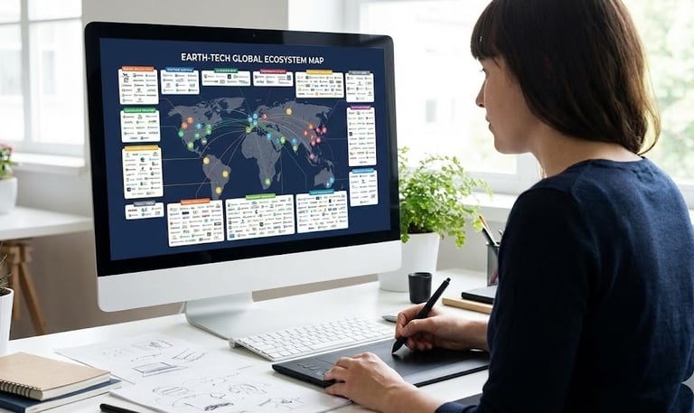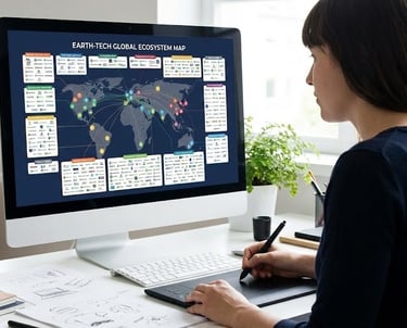 A curated, publishable map of the entire Earth-Tech landscape—companies, labs, builders, toolchains, and key opinion leaders—organized by domain and geography. Built to become the reference layer founders, investors, and institutions use to navigate what’s real, what’s emerging, and who is shaping standards right now.