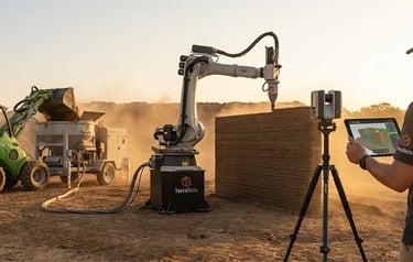 Unlike traditional concrete printing, Earth-Tech requires adaptive robotic systems capable of handling natural variability, changing environments, and complex architectural geometries.