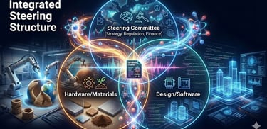 Genesis is structured as an integrated ecosystem. A central Steering Committee aligns strategy, regulation, and finance, guiding two focused technical circles: Hardware/Materials and Design/Software. This structure ensures that the field's engineering foundation is not just technically sound, but also regulatorily viable and market-ready.